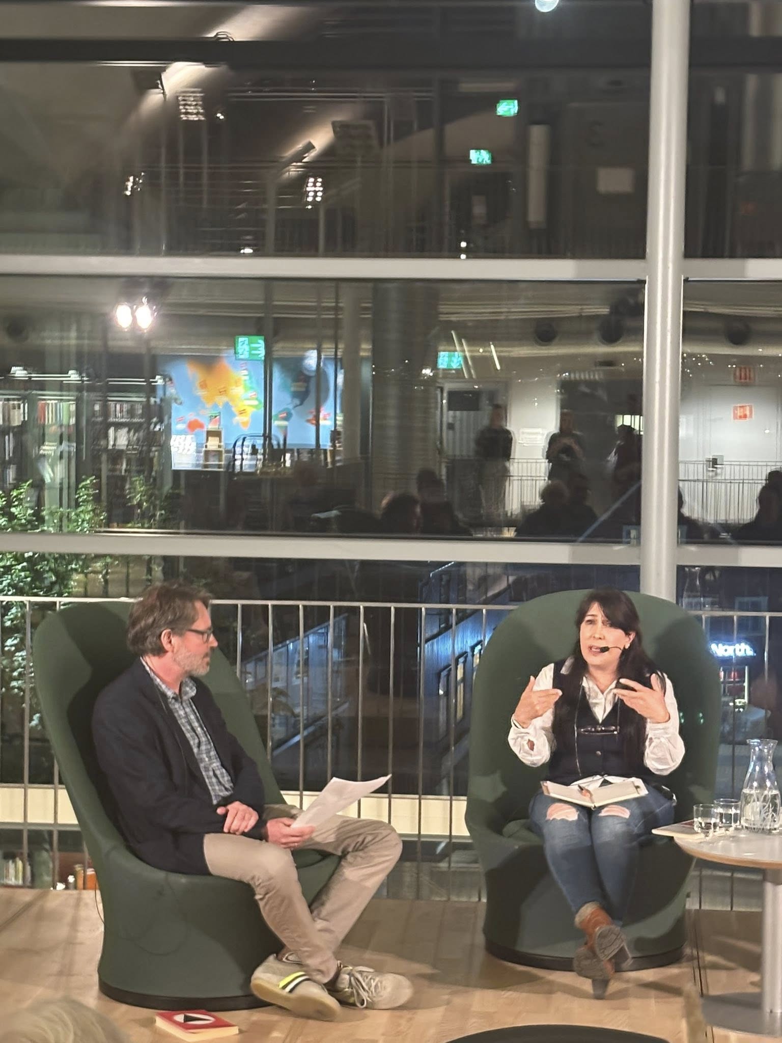 The second day began with a film screening of the documentary ‘Behind the Mask’. The film follows the Uyghur linguist, writer, and activist Abduweli Ayup as he travels to Germany to confront a former prison guard at a Chinese internment camp for Uyghurs- a meeting fraught with personal and family dilemmas. Prior to the screening, there was a reading of Uyghur poetry and a musical performance by the Uyghur musician Yusuf Suleiman, ICORN resident in Piteå from 2023 to 2025.